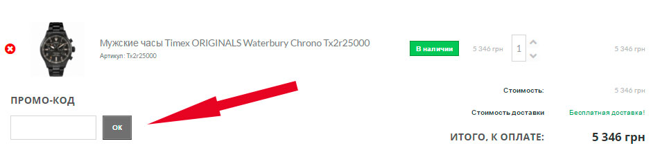 2. Для того, чтобы воспользоваться кодом на скидку, введите его в поле "ПРОМО-КОД". И нажмите кнопку «ОК»
