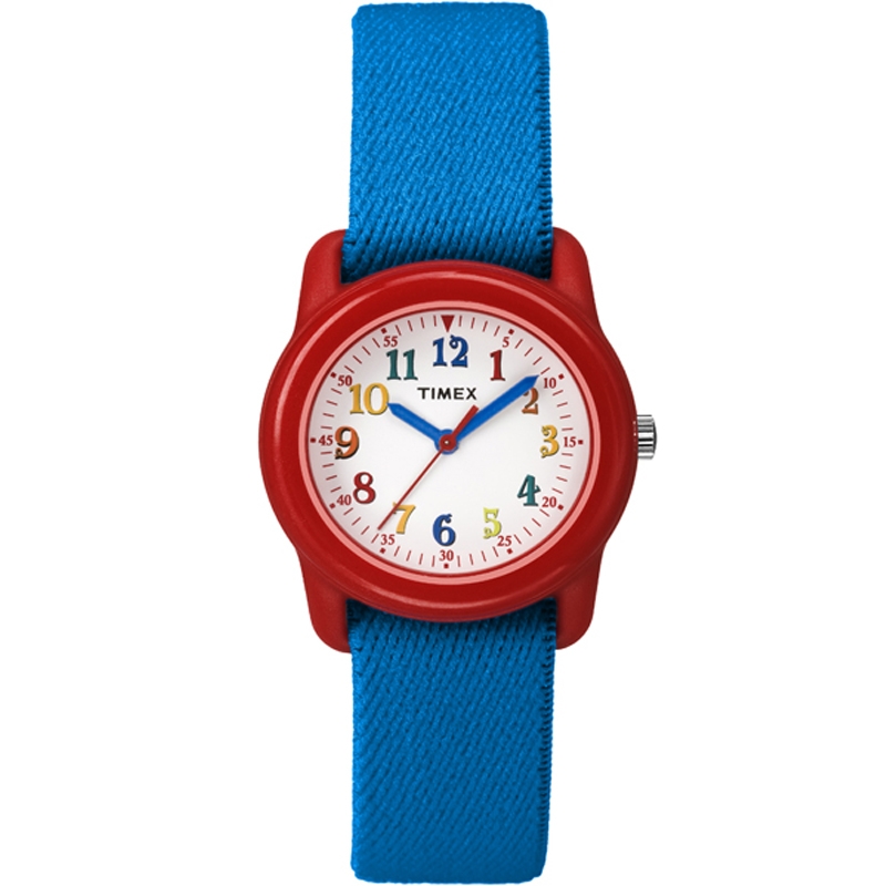 YOUTH Kids TW7B99500 -обучающие детские часы от Timex (Таймекс). Простая и понятная модель в цветовой гамме, которая подойдет как для девочек, так и для мальчиков. Часы из коллекции Time Teacher – это легкий и увлекательный способ научить ребенка ориентироваться во времени. Милые и легкие часики, которые обязательно привлекут внимание ваших деток, а также помогут научиться читать время. Круглый белый циферблат с легкой для восприятия разноцветной индикацией. Классические три стрелки для демонстрации часов, минут и секунд, к тому же минутная шкала содержит частичные циферные обозначения для максимально легкой ориентации. Ребенку комфортно носить часики благодаря мягкому регулируемому ремешку из эластичного текстильного материала-резинки. При этом ремешок можно легко постирать.