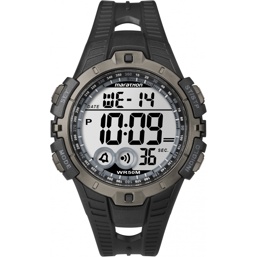 Мужские часы Timex MARATHON T5k802 Мужские, Каучуковый ремешок, Цифровые кварцевые, Пластиковое стекло, Календарь, Хронограф, Будильник, Мультифункциональные часы, 14ммx46ммx46мм