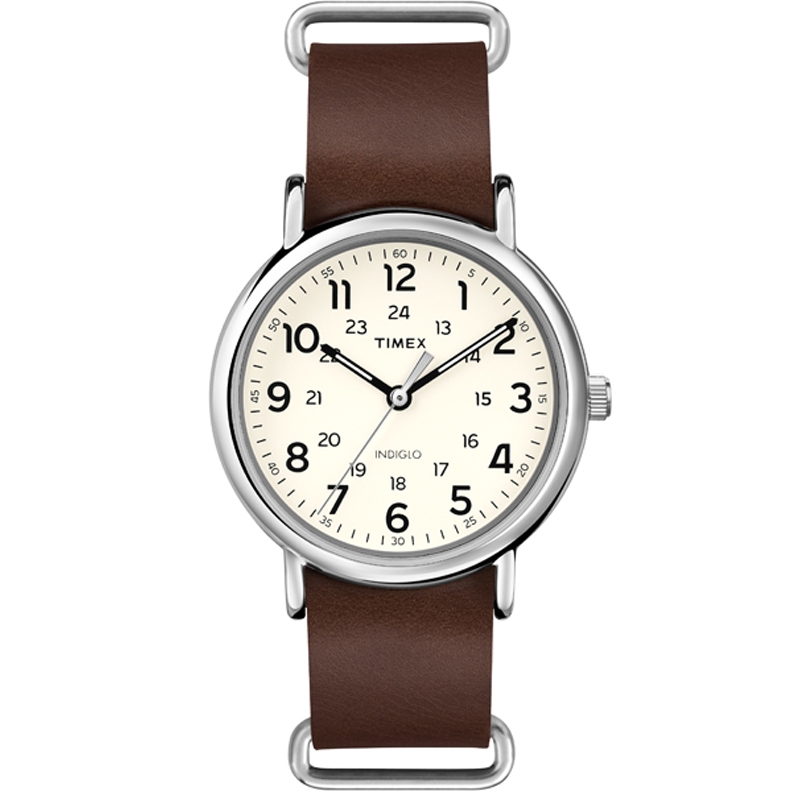 WEEKENDER Oversized мужские / кварц / кремовый циферблат / темно-коричневый кожаный ремешок / 30м / Минеральное стекло / ST / 40мм / Ремешок-20мм / Box12 Timex T2P495 США