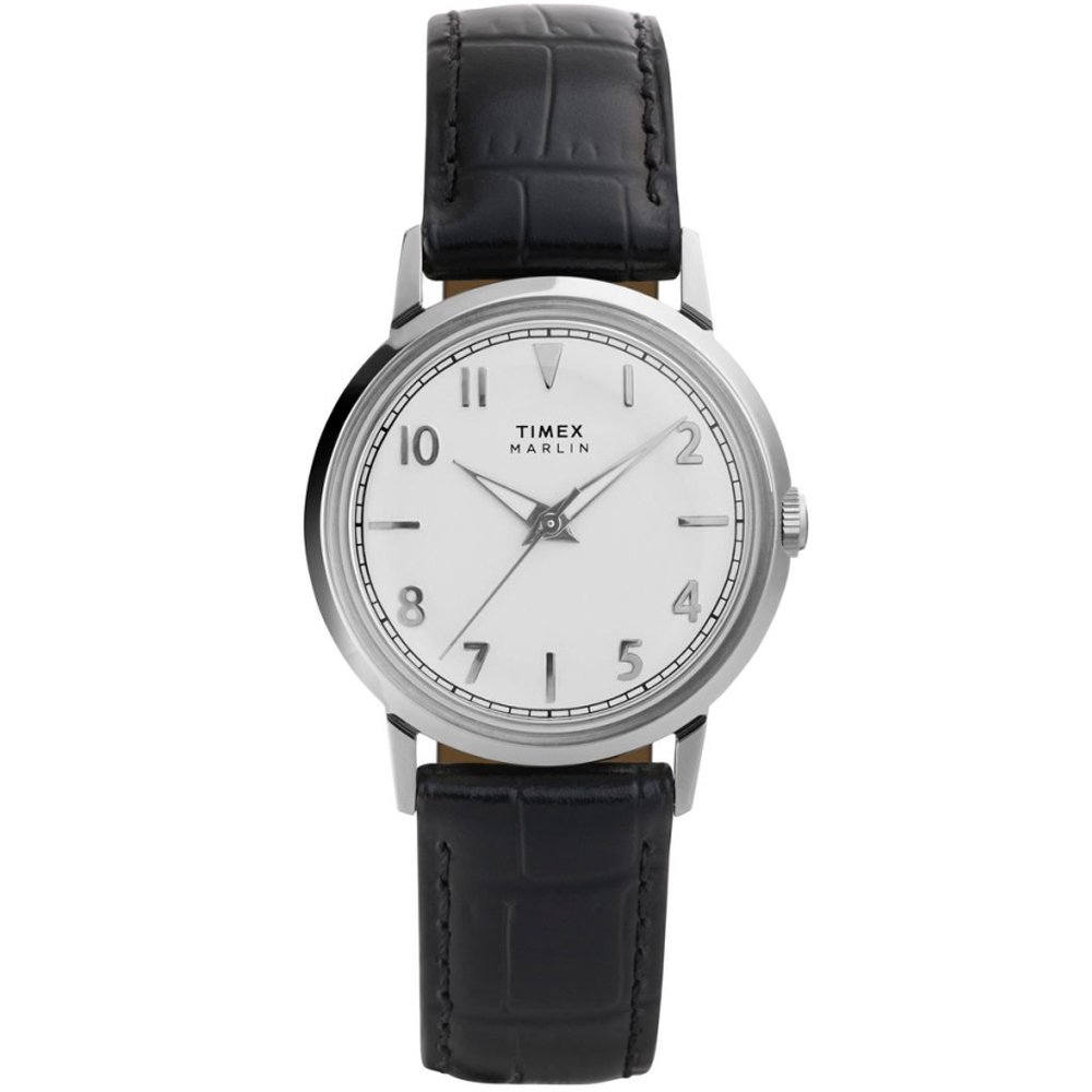 Timex MARLIN 34мм/женские/кварцевые/серебристый циферблат/черный кожаный ремешок /30м/Акриловое стекло/Стальной корпус/Ремешок - 18мм /BoxVQ TW2Y37600 (США) Гарантия: 1 год