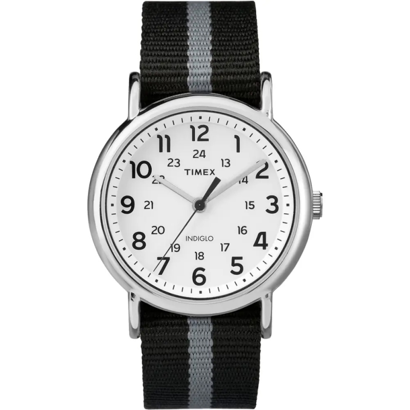 Timex WEEKENDER (Уікендер) TW2P72200 - повсякденний чоловічий годинник від Таймекс з двостороннім нейлоновим ремінцем і підсвічуванням. Прості і стильні, вони чудово впораються з роллю практичного аксесуара на кожен день. Виконано в легкому дизайні з латунним корпусом і текстильним ремінцем і чистим білим циферблатом. Фірмова технологія підсвічування Indiglo (Індігло) - для включення натисніть на заводну головку.
