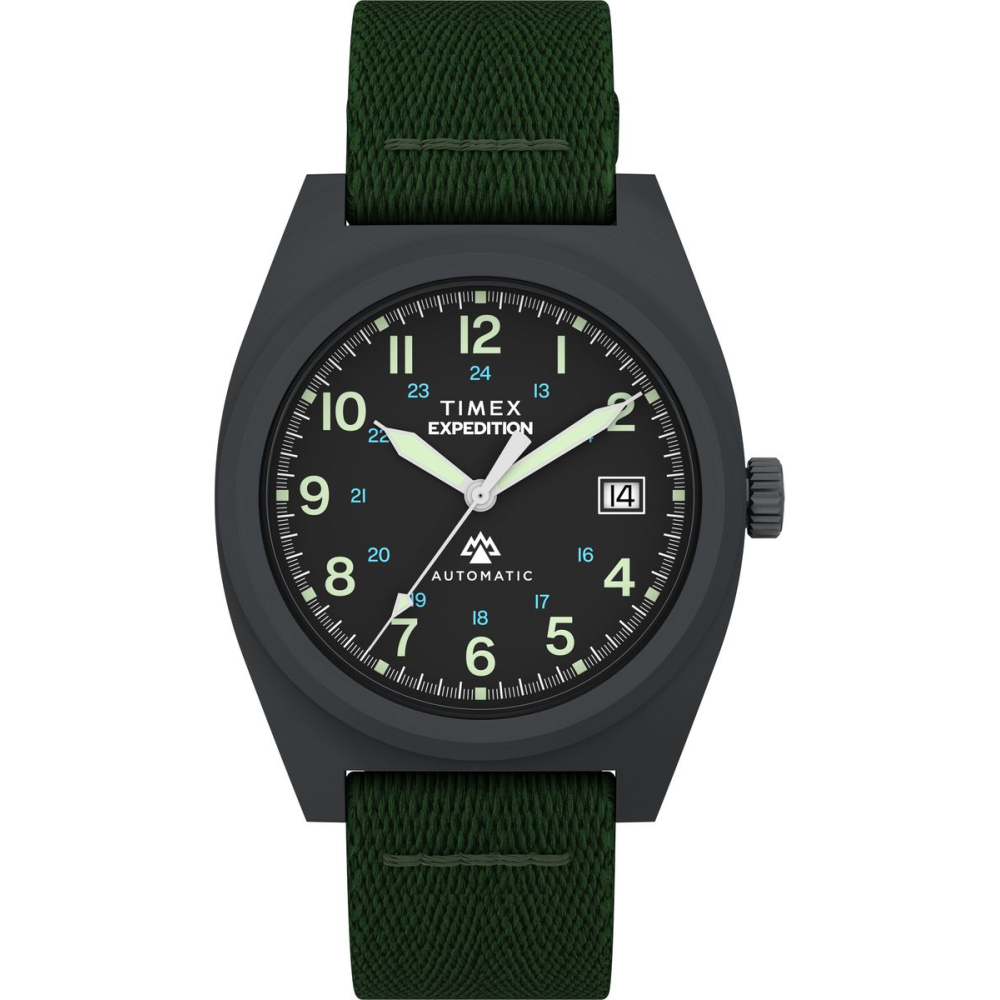 Timex EXPEDITION Field Post Automatic 39мм/чоловічий/автоматичний/чорний циберблат/зелений текстильний ремінець /100м/Сапфірове скло/Сталевий корпус з чорним покриттям/Ремінець - 20мм /BoxVQ TW2Y39800 (США) Гарантія