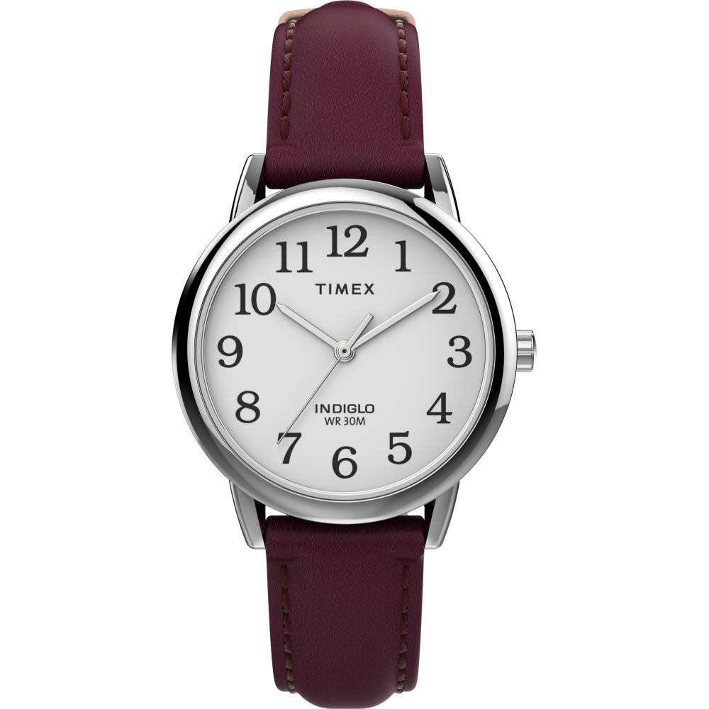 Timex EASY READER жіночий годинник / кварцовий / білий циферблат / бордовий шкіряний ремінець / 30м / Мінеральне скло / Сріблястий корпус-30мм / Ремінець-14мм TW2U96300 (США) Гарантія: 1 рік
