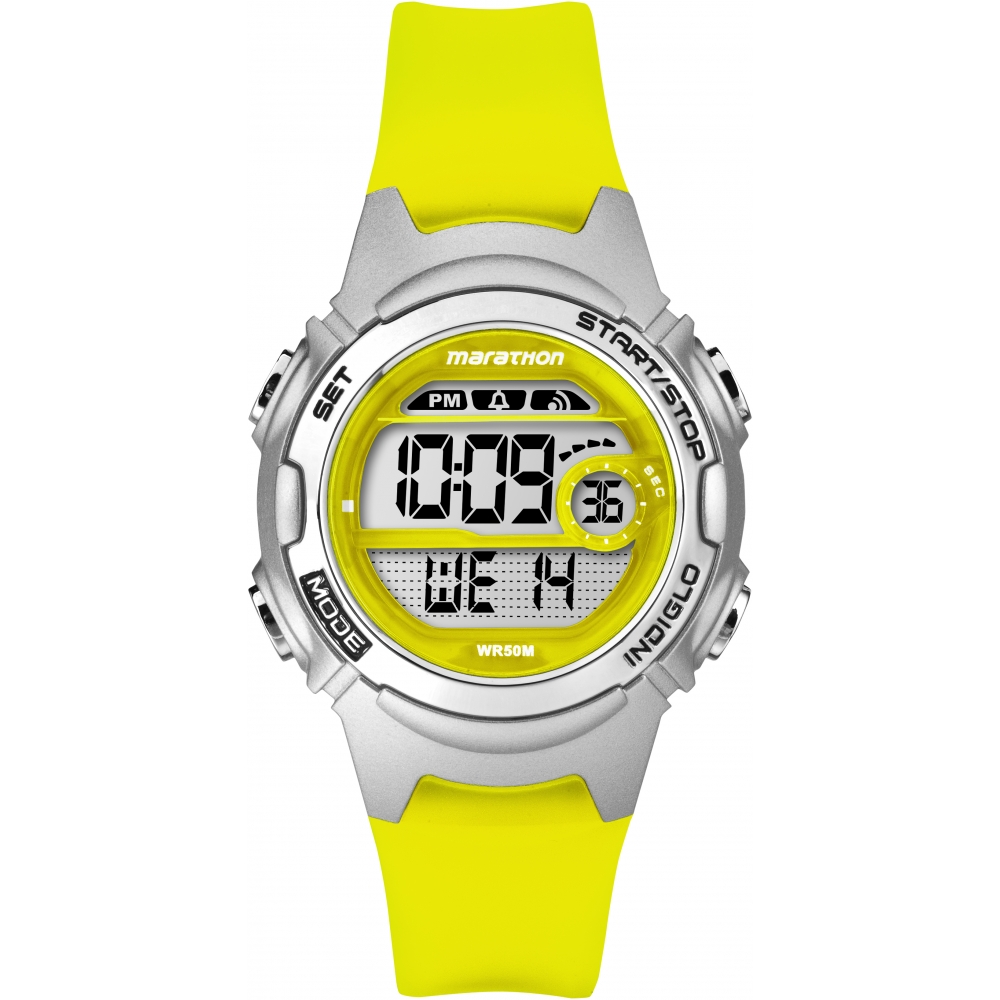 Часы Timex MARATHON женские / электронная индикация / подсветка / серо-желтый циферблат / желтый резиновый ремешок / 50м / R / 34мм / Ремешок-14мм / Box17 TW5K96700